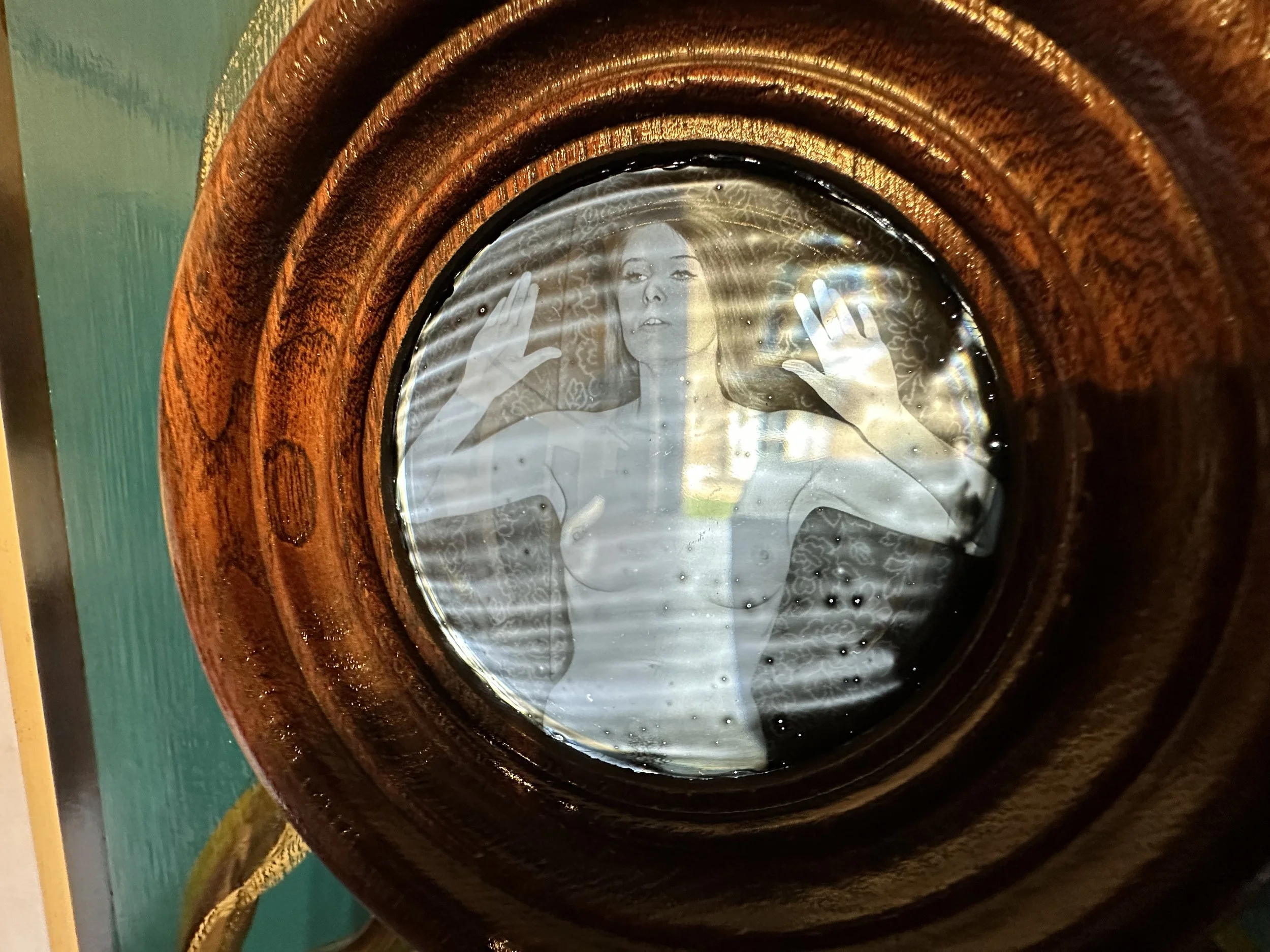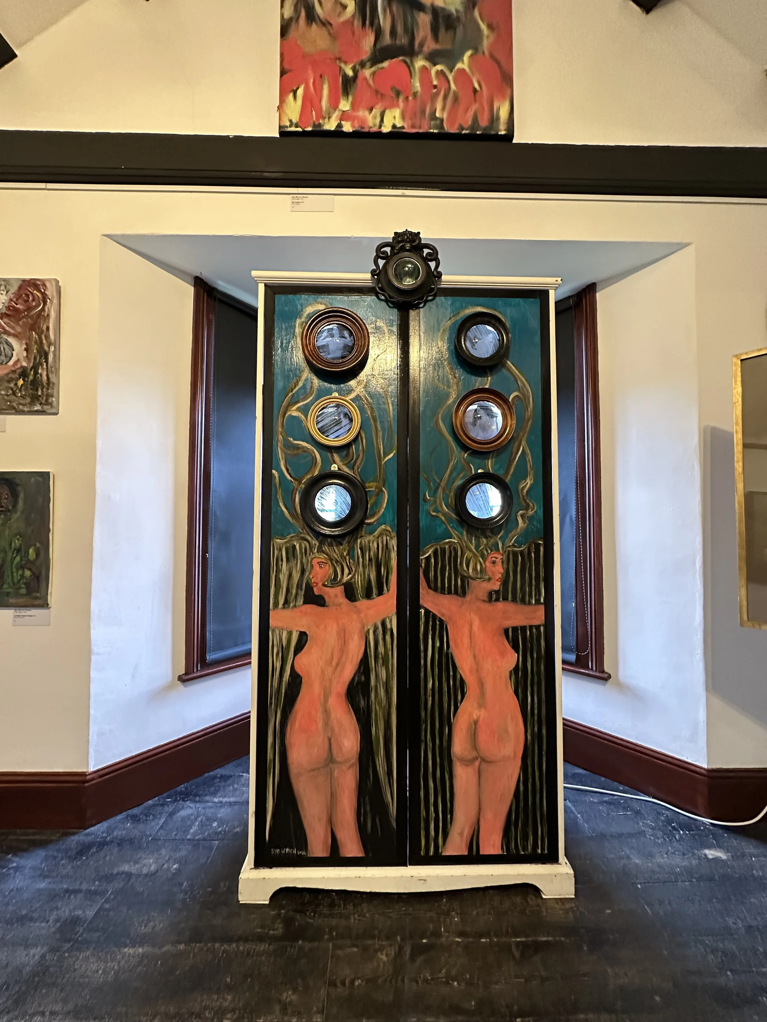 Usually to be found in the darkroom, Syd (Buron) Wytch (1977) has spent the last six months in a studio in the tropical house in Ventnor Botanical Gardens. He has attempted to go beyond the realm of witnessing the physical world with a camera, and has embarked on an exploration of imagination and vision, specifically - adoration of the Goddess; creating large oil paintings and a surrealistic ‘reverse peep-show’ in a wardrobe.